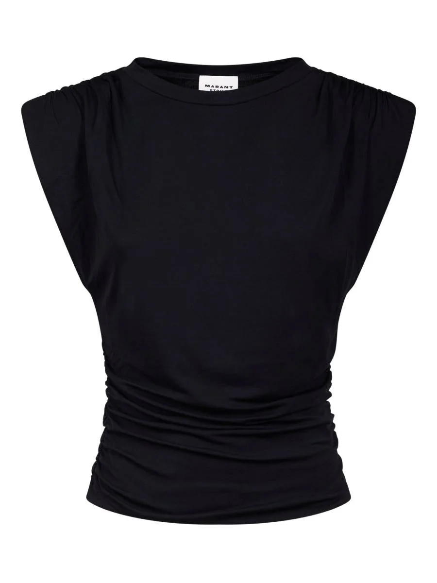 Marant Etoile Black top with round neck and gathered waist Gender: Women Material: MAIN MATTER:97% MODAL 3% ELASTHANNE Color: Black Made in: Portugal Product ID: TS0274FBC3K01E01BK *Import tax/duty will be calculated at checkout (If applicable)