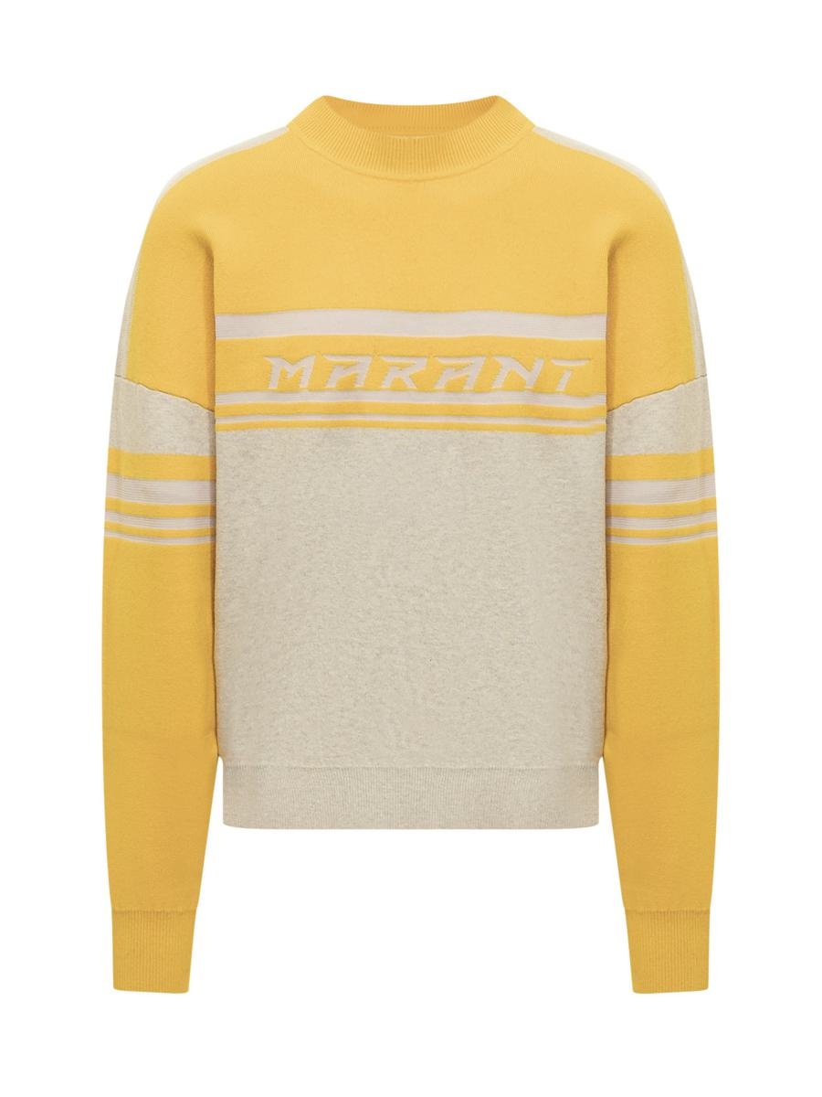 Yellow sweater with long sleeves. Crew neck. Logo on front. Ribbed collar, cuffs and bottom. Gender: Men Material: 39% COTTON 16% WOOL 22% VISCOSE 13% POLYESTER 9% POLYAMIDE 1% ELASTANE Color: YELLOW Made in: IMPORTED Product ID: 23APU0183HAA3L84H 10SU *Import tax/duty will be calculated at checkout (If applicable)
