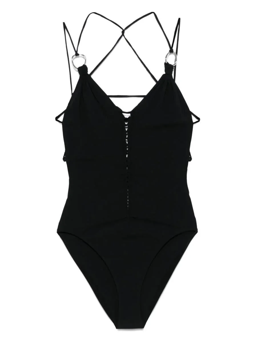 black sliding knot fastening ring hardware detailing braid detailing Be mindful to try on swimwear over your own garments. Gender: Women Material: 78% POLYAMIDE 22% ELASTHANNE Color: Black Made in: Imported Product ID: MB0019FAC2P01I 01BK BLACK *Import tax/duty will be calculated at checkout (If applicable)