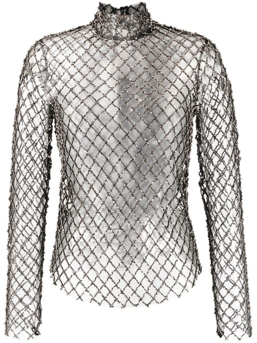 Lupita crystal-embellished tulle top