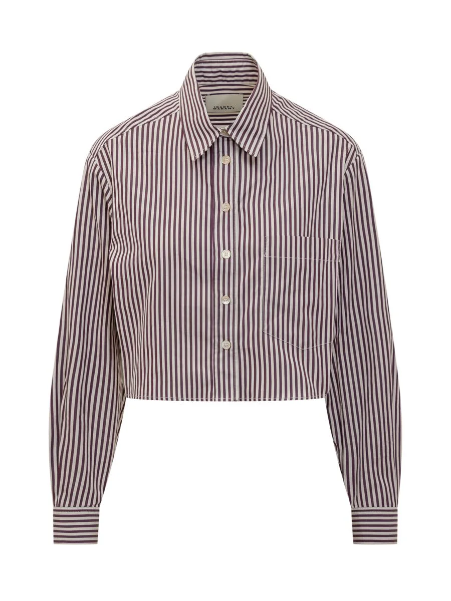 Fleora pattern shirt from Isabel Marant. Striped cropped design, front button closure and patch pocket. Gender: Women Material: 100% COTTON Color: BROWN Made in: Imported Product ID: 24ACH0179FAB1I01I ECBY *Import tax/duty will be calculated at checkout (If applicable)
