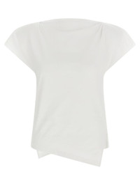 Sebani padded asymmetric T-shirt from ISABEL MARANT featuring optical white, organic cotton, boat neck, shoulder pads, cap sleeves, side slit and asymmetric hem. This item is made from at least 50% organic materials Gender: Women Material: 100% COTON Color: WHITE Made in: PT Product ID: TS0097FAA1N41I20WH *Import tax/duty will be calculated at checkout (If applicable)