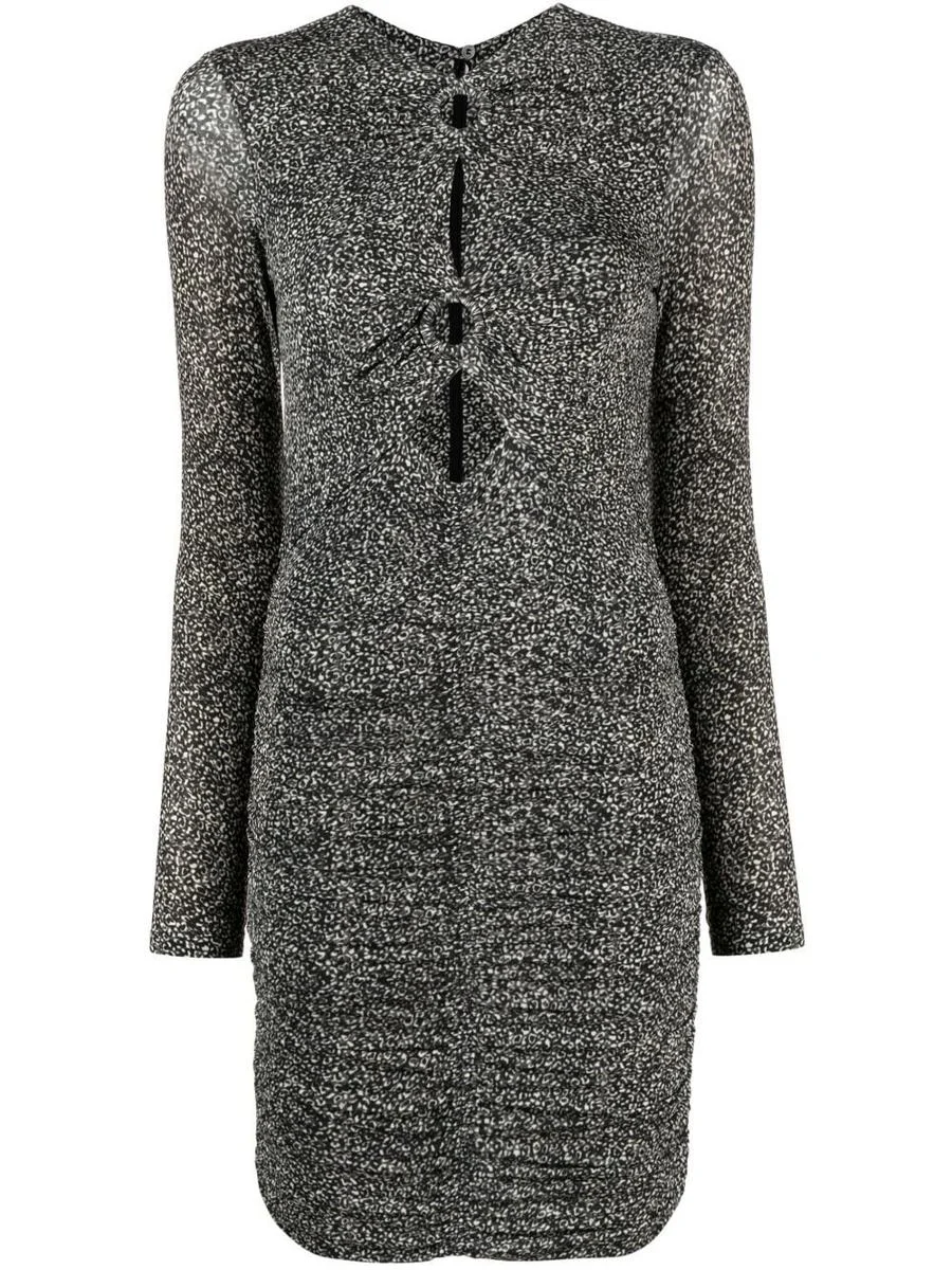 cut-out minidress from ISABEL MARANT featuring black, cut-out detailing, gathered detailing, round neck, long sleeves and thigh-length. This piece fits true to size. We recommend you get your regular size Model is 1,75m / 5ft 8in wearing size 36 (FR) Gender: Women Material: VISCOSE 92%, SPANDEX/ELASTANE 8% Color: BLACK Made in: PT Product ID: RO0076FA-A1K32IJANA01BK *Import tax/duty will be calculated at checkout (If applicable)