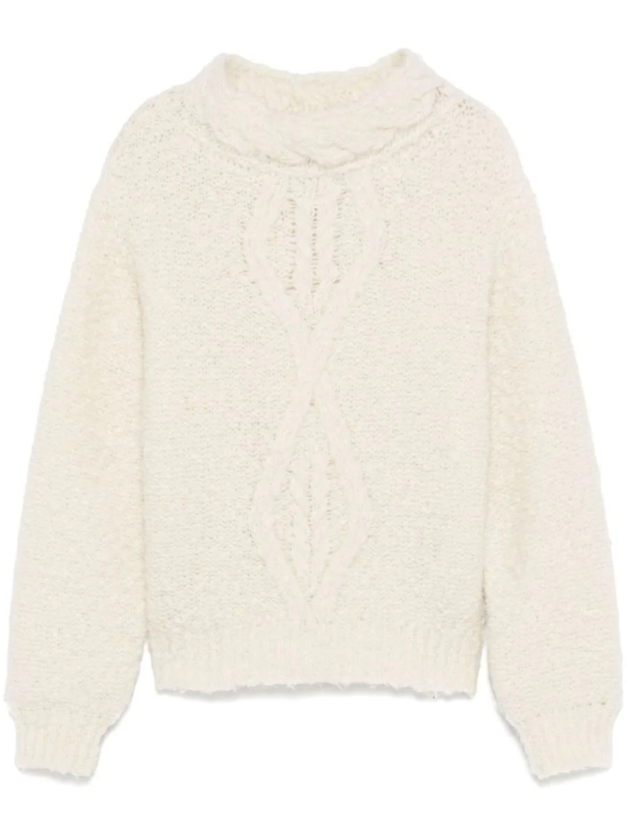 Cable knit alpaca blend sweater Stand-up collar Cable knit front Long sleeves Ribbed finishes Relaxed fit Style: PU0694FAC3L07I23EC ROMANE 87% alpaca, 13% polyamide