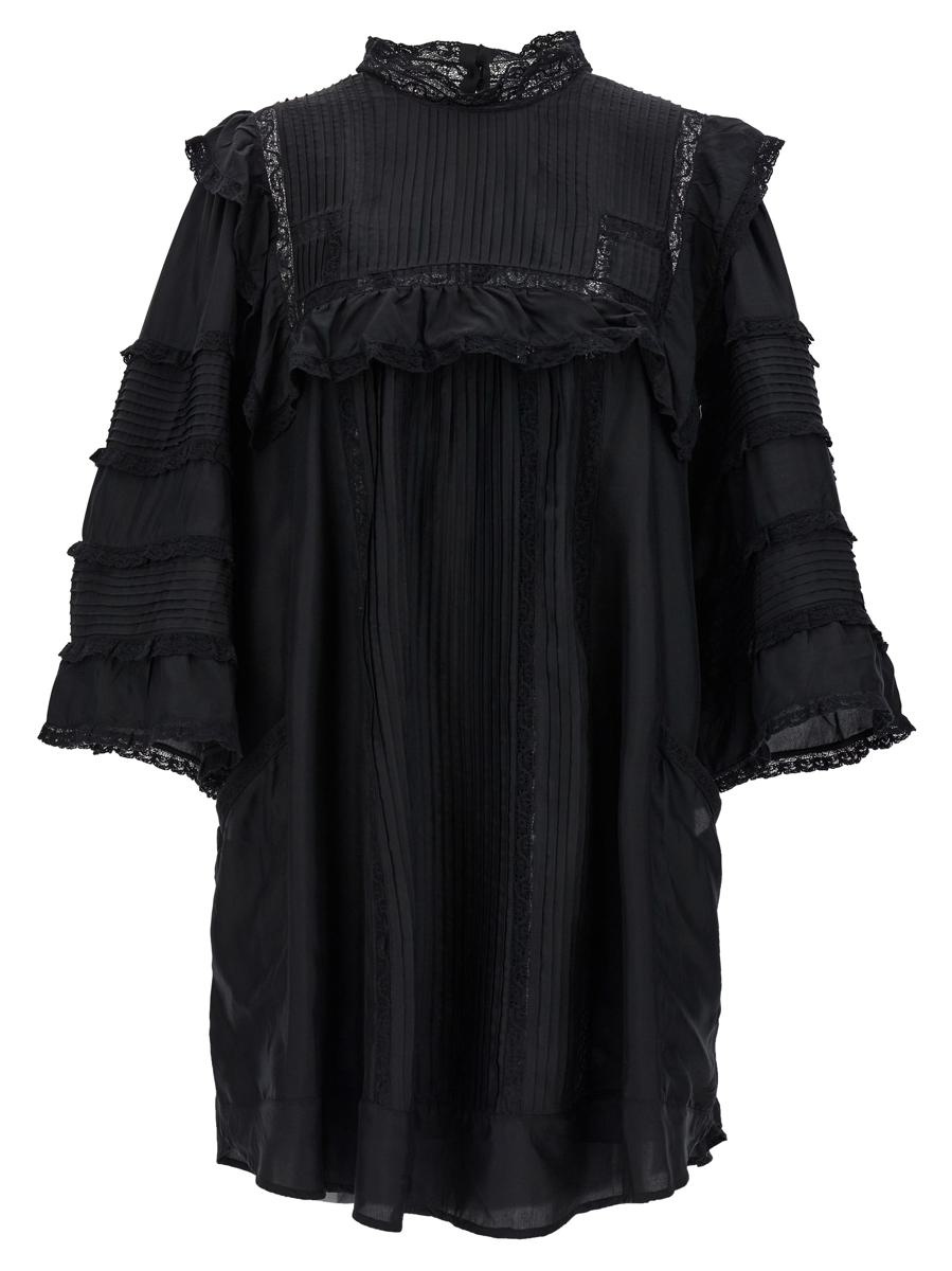 'Zakae' mini dress with 3/4 sleeves, crew neck, plastron and pleated details with trimmings, side pockets Gender: Women Material: 100% COTTON Color: BLACK Made in: IN Product ID: 24PRO0425FAB1J10I01BK *Import tax/duty will be calculated at checkout (If applicable)