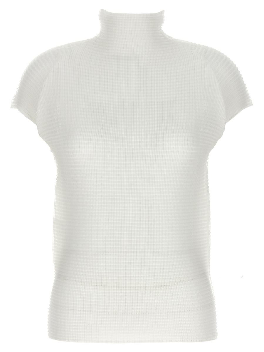 'Wooly Pleats' pleated blouse with high neck and short sleeves. SUSTAINABLE: product made from recycled polyester Gender: Women Material: 100% POLYESTER Color: WHITE Made in: Imported Product ID: IM58FJ40401 *Import tax/duty will be calculated at checkout (If applicable)