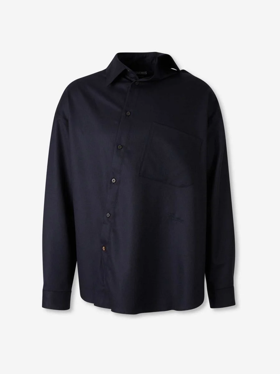 Asymmetric Check ShirtShirt By Jacquemus• Embroidered logo on the front and J loop on the back• Asymmetric J-shaped chest pocket• Oversized asymmetric cut• Buttoned cuffs• Made from wool flannel• Long sleeve• Front button closure with asymmetric placket• Asymmetric pointed collar• Solid, ideal for both formal and casual occasionsComposition: 100% virgin woolFrance Gender: Men Material: 100% VIRGIN WOOL Color: MIDNIGHT BLUE Made in: Imported Product ID: 25HSHM00537AW00631_380NAVY *Import tax/duty will be calculated at checkout (If applicable)