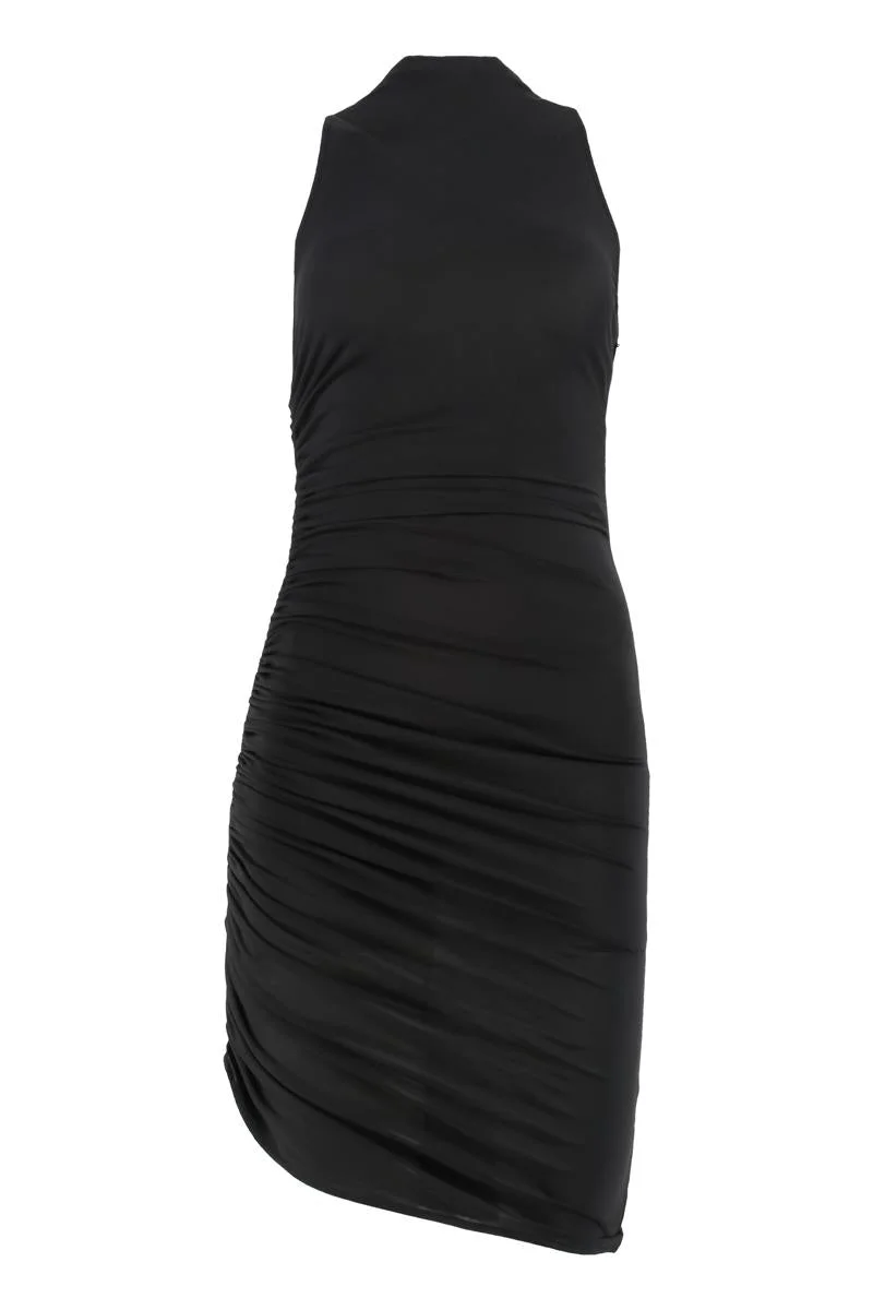 Asymmetric dress Square Mini black dress with an elegant and versatile design. The asymmetrical silhouette adds a modern touch with draped finishes. Made from a soft and slightly elasticized fabric, it offers comfort and ease of movement. Perfect for formal occasions or special evenings, it can be paired with high heels and sophisticated accessories for an impeccable look. 75% Acetate, 20% Polyamide, 5% Elastane Gender: Women Material: ACETATE Color: Black Made in: Portugal Product ID: 25HDRW00731AW00211_990 *Import tax/duty will be calculated at checkout (If applicable)
