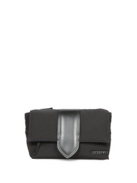 Black technical fabric belt bag with silver metallic leather detail. Zip closure and Jacquemus logo on the front. Define your style with Jacquemus' 'La Banane Bambino' belt bag, blending practicality with refined city elegance. The metallic leather accent adds a touch of modernity, while the spacious inner pocket ensures functionality. Gender: Men Material: 100% POLYAMIDE Color: Black Made in: Imported Product ID: 246BA379 3174 990 *Import tax/duty will be calculated at checkout (If applicable)