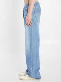 Washed indigo blue denim jeans. Features mid-high waist, J-shaped belt loop, engraved metal button closure, metal rivets, five pockets, long straight leg, laser-printed logo on the back pocket, and contrasting topstitching. Regular fit. The model is 190 cm tall and wears size 32 US. Size nationality: US Gender: Men Material: 100% COTTON; POCKET LINING: 65% POLYESTER, 35% COTTON Color: BLUE Made in: Portugal Product ID: 942881 PAM00028A D00038 33C *Import tax/duty will be calculated at checkout (If applicable)