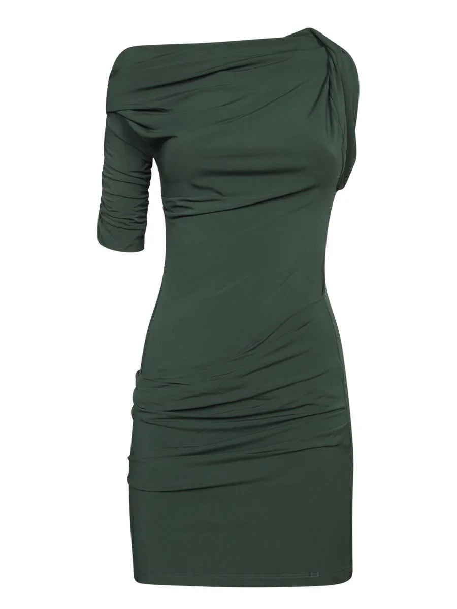 Long sleeve, asymmetrical neckline, wrap design with draping. This elegant green dress from charms with an asymmetrical cut and sophisticated draping that enhances the silhouette. Perfect for evening events and cocktail parties. Gender: Women Material: 71% VISCOSE 21% POLYESTER 8% ELASTANE Color: GREEN Made in: Imported Product ID: 241DR143 2381 590 *Import tax/duty will be calculated at checkout (If applicable)