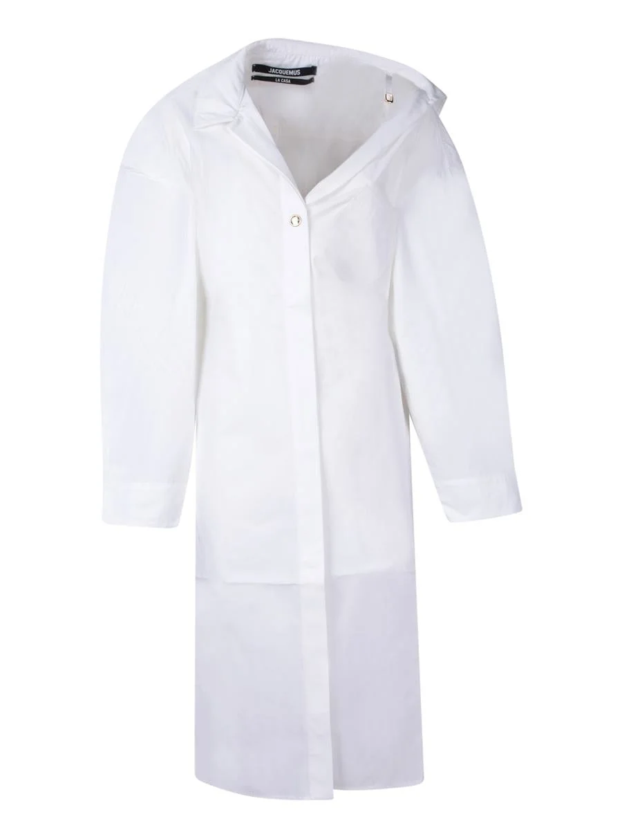 Lightweight cotton fabric. Minimalist design with half-button front closure. Left chest pocket. Elegant Jacquemus white cotton long chemise dress featuring a clean cut and a relaxed silhouette that skims the figure. Gender: Women Material: 100% COTTON Color: WHITE Made in: Imported Product ID: 243DR124 1520 100 *Import tax/duty will be calculated at checkout (If applicable)