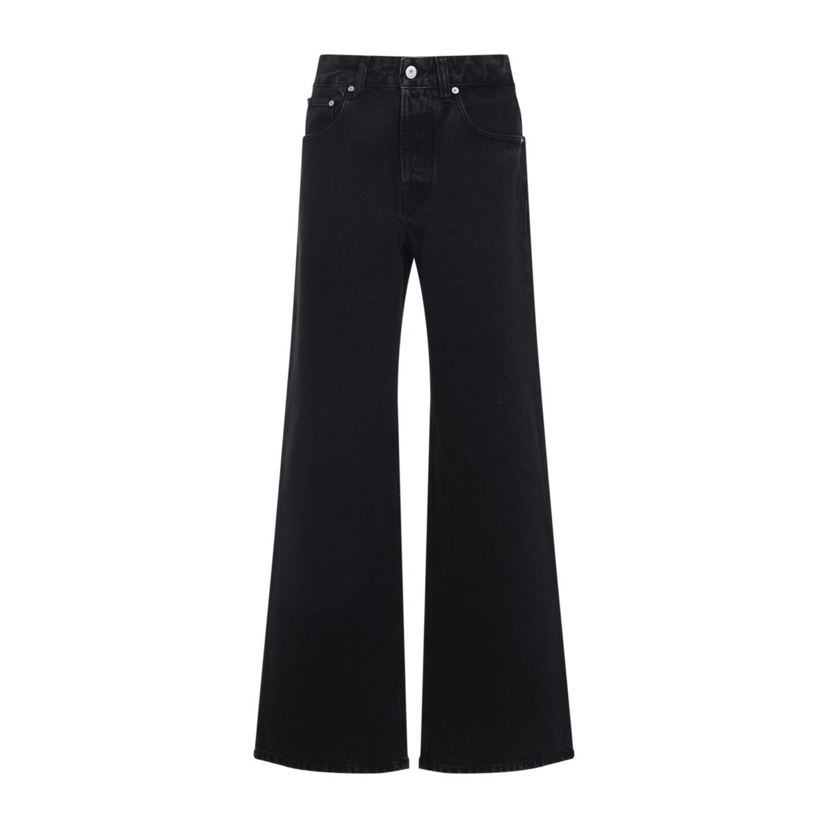 Jacquemus Le De-Nimes Large Black Cotton Jeans. Crafted from black cotton denim, high-rise, belt loops, front J belt loop detail, 5-pocket design, front button fly fastening, lasered logo at the back pocket, long wide leg. Gender: Women Material: 100%COTTON Color: Black Made in: Italy Product ID: PAW00036AD00039_990 *Import tax/duty will be calculated at checkout (If applicable)