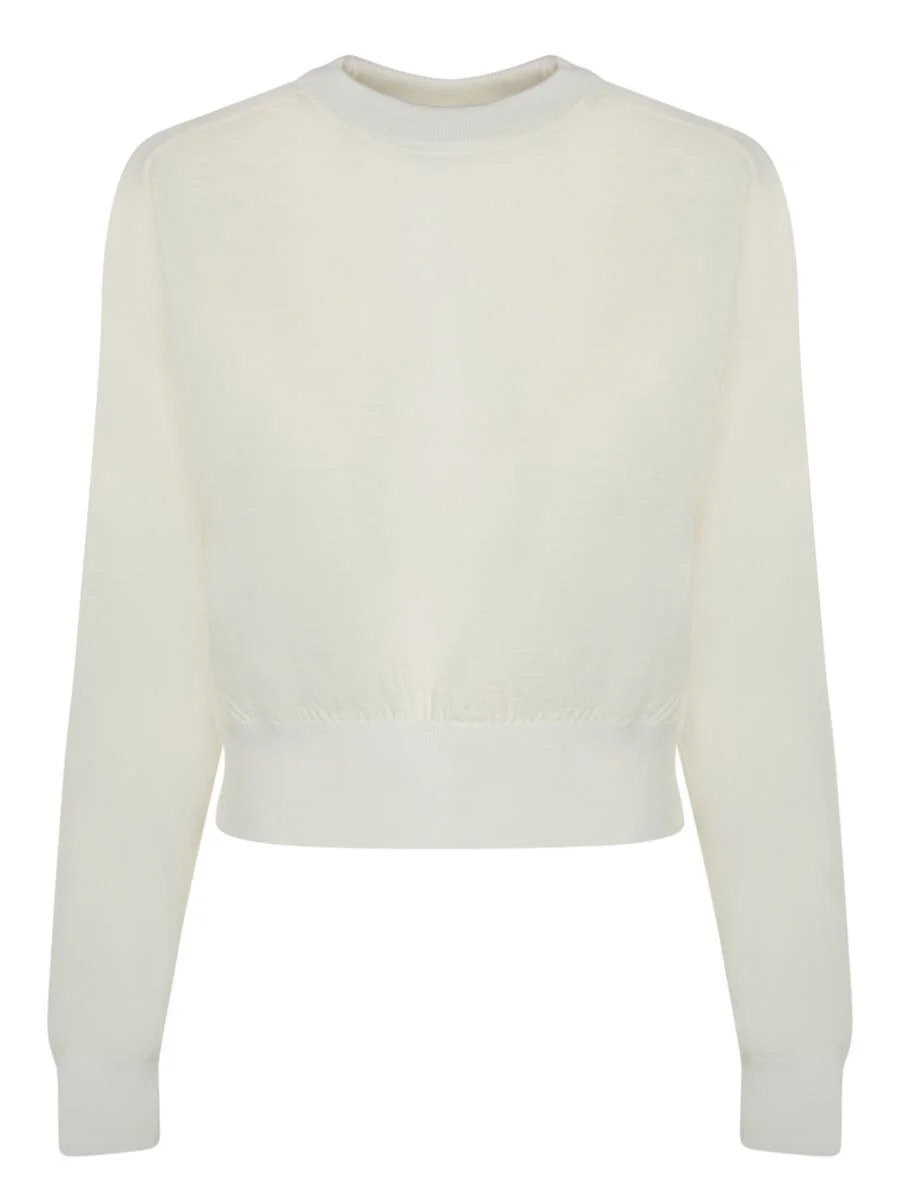 Fine knit round neck. Embroidered detail on the chest. Short, slim fit. A sophisticated piece by Jacquemus, featuring refined knit craftsmanship with a distinctive embroidered accent for a modern and sleek look. Gender: Women Material: 96% WOOL 4% POLYAMIDE Color: WHITE Made in: Imported Product ID: SWW00632 AK00299 110 *Import tax/duty will be calculated at checkout (If applicable)
