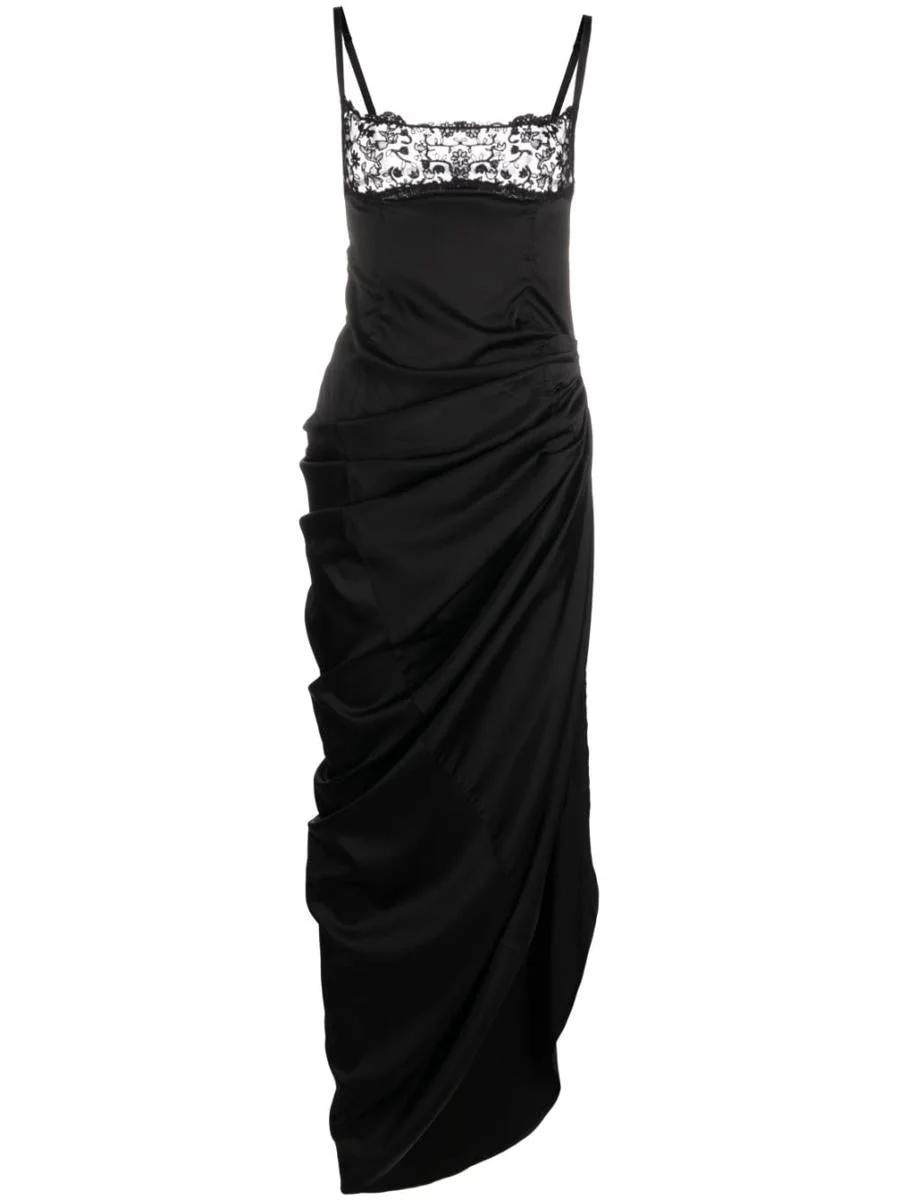 La Saudade floral-embroidered minidress from Jacquemus featuring black, adjustable spaghetti straps, square neck, tulle panel, floral embroidery, tulle panel, gathered detailing, open back, draped detailing, asymmetric hem and ankle-length. This piece fits true to size. We recommend you get your regular size Model is 1,75m / 5ft 8in wearing size 36 (FR) Gender: Women Material: POLYAMIDE 100%, VISCOSE 96%, SPANDEX/ELASTANE 4% Color: BLACK Made in: IN Product ID: 233DR0731495BLACK *Import tax/duty will be calculated at checkout (If applicable)