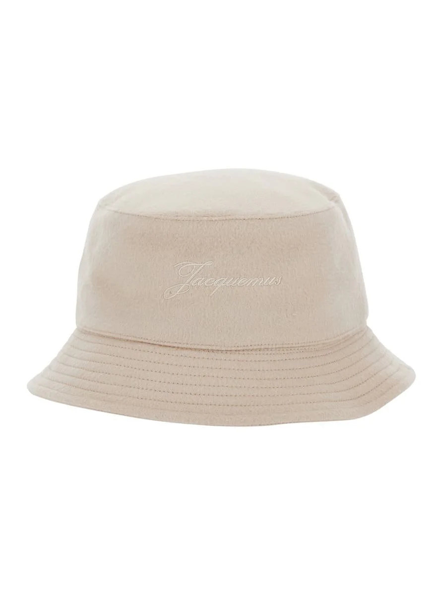 Jacquemus 'Le Bob Cachemiro' Beige Bucket Hat With Logo Lettering Embroidery On The Front And Ribbed