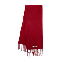 Fringed appliquéd brushed knitted scarf Red