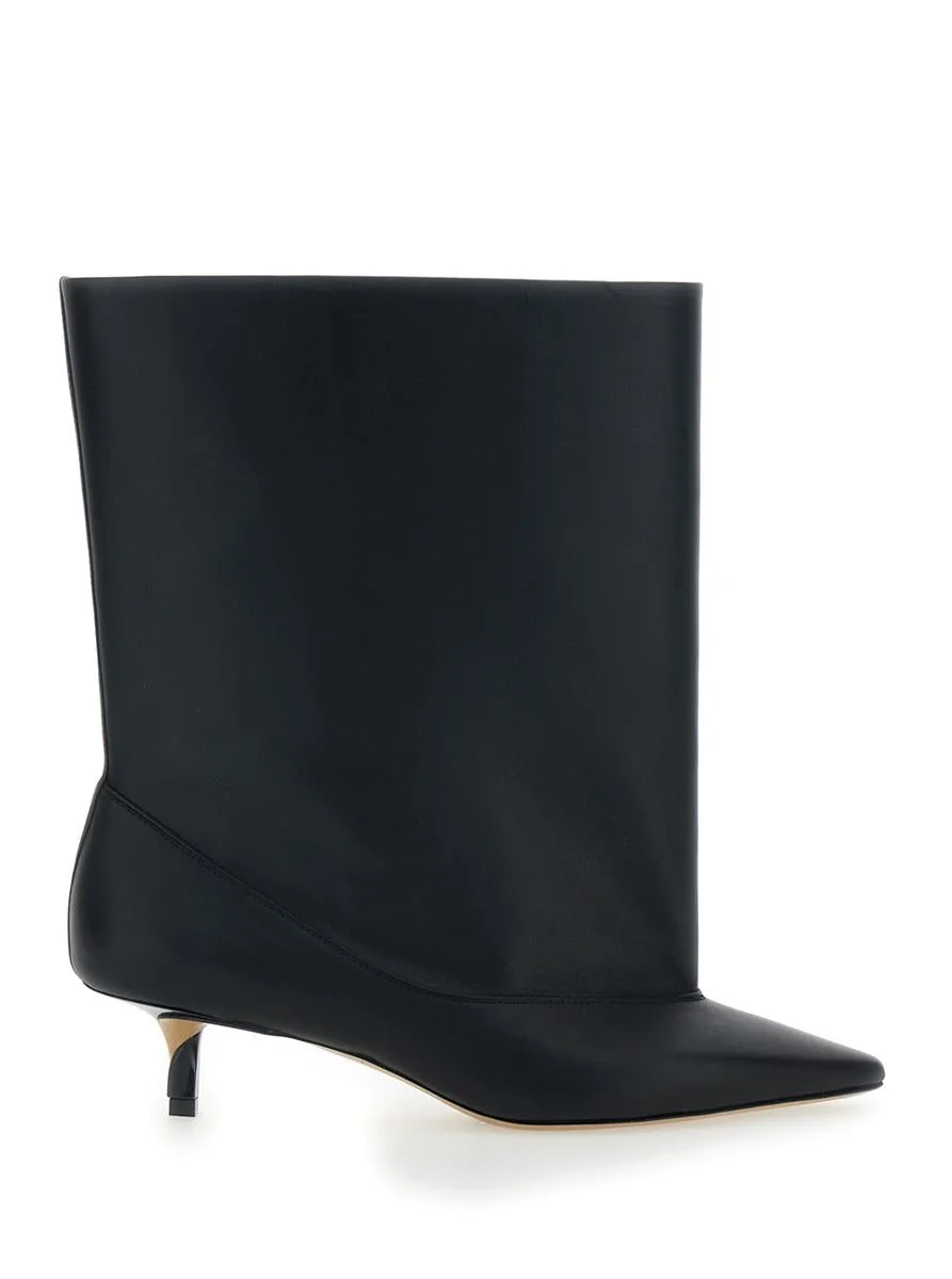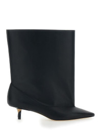 Jacquemus 'Les Bottes Tourni' Black Ankle Boots With Pointed Toe And Low Stiletto Heel In Leather Wo