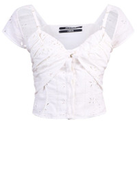 Lace top Sweetheart neckline Short sleeves Front button closure Layered design Cutout details 55% Linen 45% Viscose 100% Cotton Gender: Women Material: 55% LINEN 45% VISCOSE 100% COTTON Color: WHITE Made in: Imported Product ID: 211TO07 211 113114 *Import tax/duty will be calculated at checkout (If applicable)