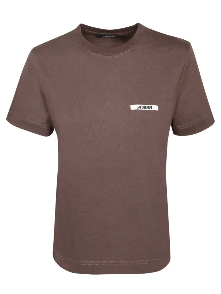 Short sleeve t-shirt. Brown color. JACQUEMUS logo on the front. Designed with a minimalist approach, this brown JACQUEMUS t-shirt is crafted from soft gros grain cotton. It features a straight cut providing comfort and versatility for everyday wear. Gender: Women Material: 100% COTTON Color: BROWN Made in: Imported Product ID: TSW00550 AJ00029 880 *Import tax/duty will be calculated at checkout (If applicable)