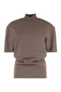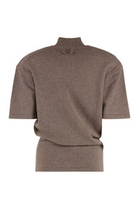 Top in knit Chestnut This knitted top with short sleeves in a brown shade is made from a soft and lightweight fabric. It features a ribbed turtle neck and 3/4 sleeves. Perfect for a casual and modern look, it is ideal to pair with jeans or elegant trousers for different occasions. 90% Merinos wool, 10% Cashmere Gender: Women Material: MERINOS WOOL Color: BROWN Made in: Portugal Product ID: 25HSWW00629AK00282_850 *Import tax/duty will be calculated at checkout (If applicable)