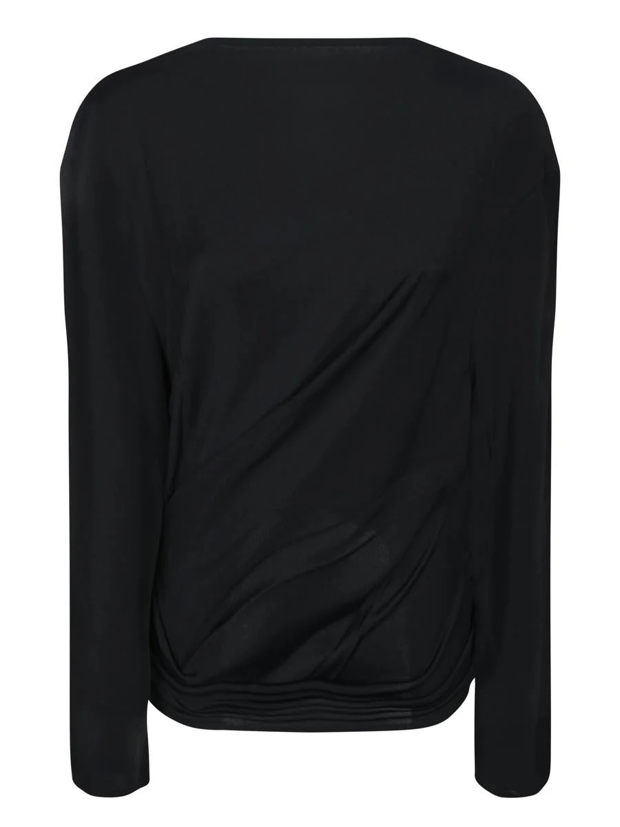 Long sleeve. Stretch fabric. Front draping. Elegant Croisiere top in black, featuring sophisticated front draping that enhances the silhouette. Gender: Women Material: 82% VISCOSE 18% POLYAMIDE Color: Black Made in: Imported Product ID: 251TO121 1026 990 *Import tax/duty will be calculated at checkout (If applicable)