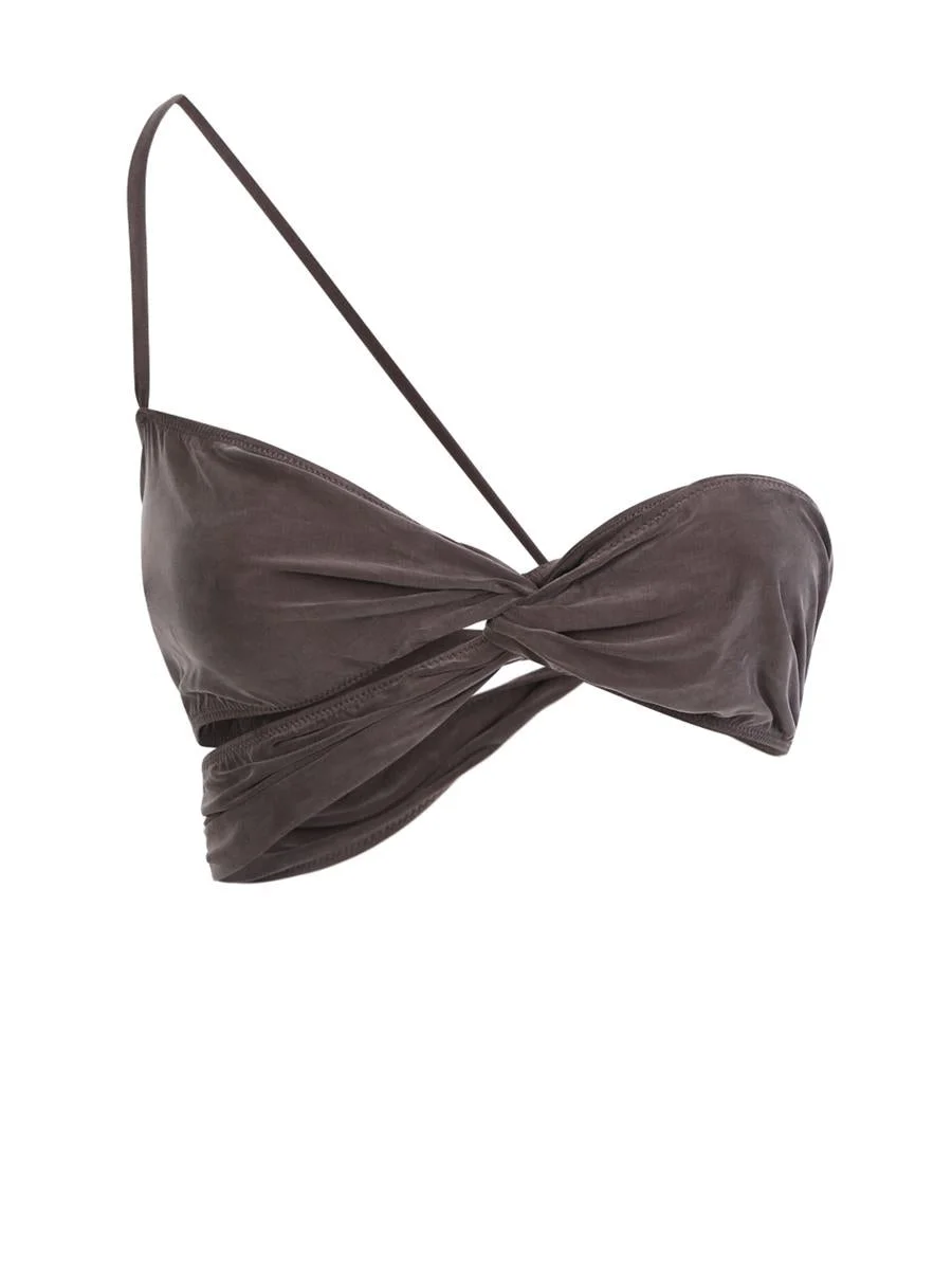 Jacquemus' Le Bandeau Espelho top made from cupro boasts an asymmetrical design One asymmetric strap. Sleeveless. Silver metal clasp closure on the back. Color: brown Material: 93% Cupro, 7% Elastane Gender: Women Material: 93% CUPRO, 7% ELASTANE Color: BROWN Made in: Imported Product ID: 231JS055 2307 850 *Import tax/duty will be calculated at checkout (If applicable)
