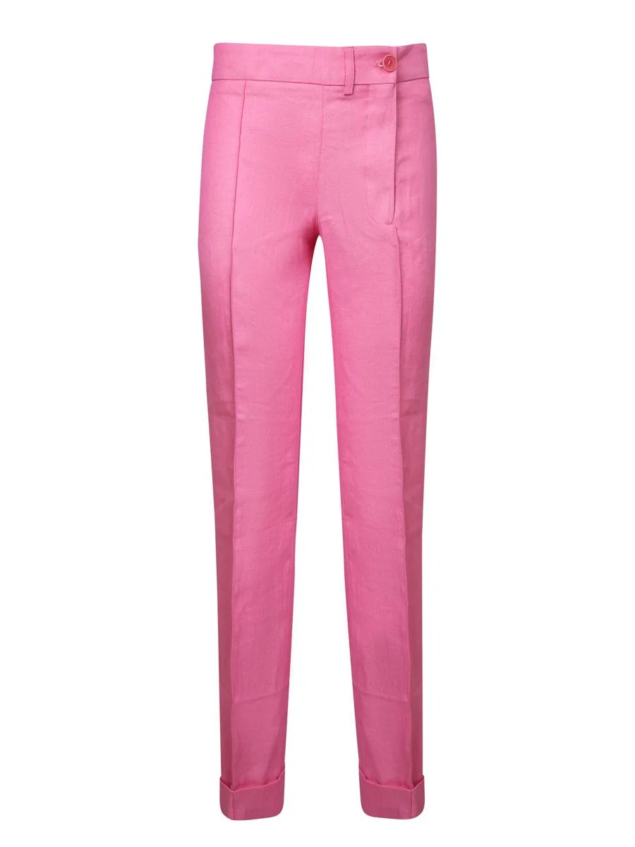 Tailored trousers High waist. Side button fastening. Belt loops. Rear welt pocket. Turn-up cuffs. Color: pink Relaxed fit 52% Polyamide, 48%Linen Gender: Women Color: PINK Made in: Imported Product ID: 221PA012 1007 430 *Import tax/duty will be calculated at checkout (If applicable)