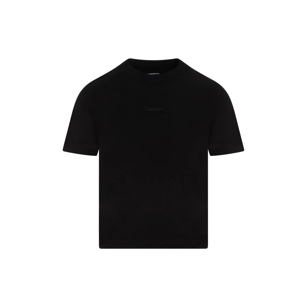 Jacquemus Le t-shirt Gros Grain in black cotton. Black cotton blend, crew neckline, short sleeves, straight hem. Black solid color, regular fit. Gender: Women Material: 94%COTTON 6%ELASTANE Color: Black Made in: Portugal Product ID: TSW00133AJ00124_990 *Import tax/duty will be calculated at checkout (If applicable)