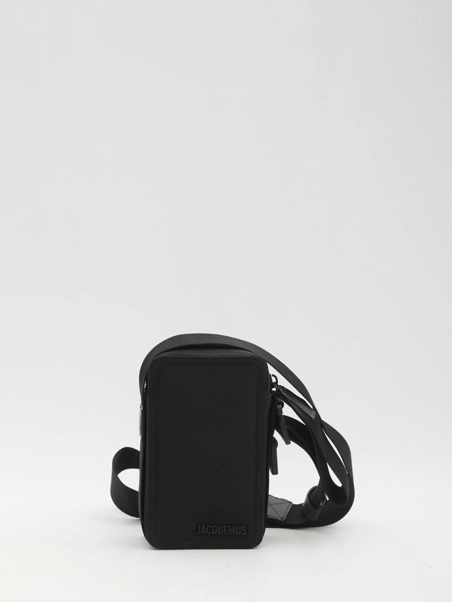 Vertical Cuerda crossbody bag in black nylon. It features a zip closure, an adjustable and removable fabric shoulder strap with a metal buckle, a black metal logo on the front, a flat exterior pocket, a single interior compartment, and a flat internal pocket. Dust bag included. Any imperfections in the material are not considered manufacturing defects but rather a characteristic of the material. Dimensions: 11x18x5cm Size nationality: UNI Gender: Men Material: EXT: 100% NYLON; INT: 100% COTTON; DETAILS: COW LEATHER Color: Black Made in: IT Product ID: 8613395 235BA091 3174 990 *Import tax/duty will be calculated at checkout (If applicable)