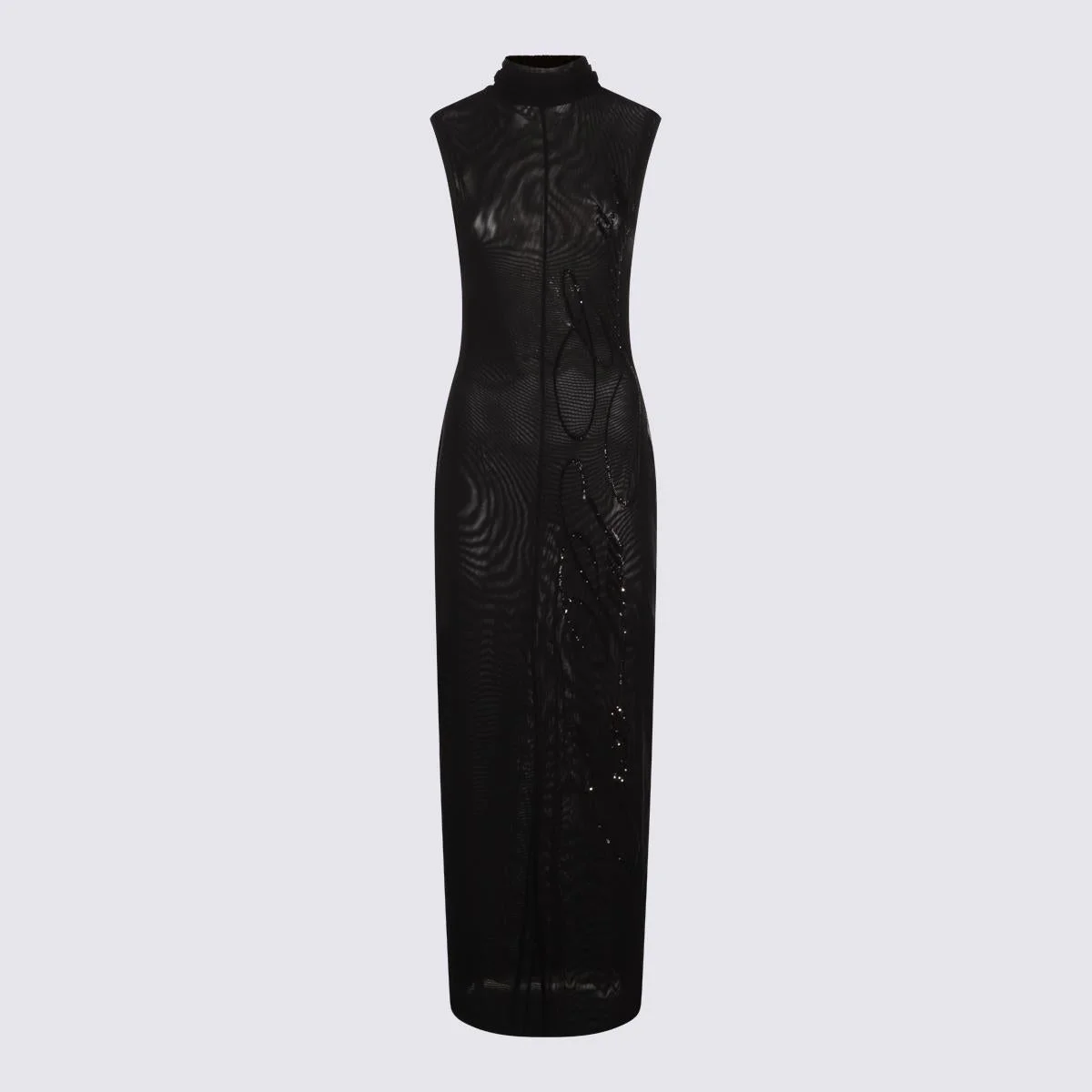 Black maxi dress from Jeans Paul Gaultier featuring high collar, sleeveless, trasparence, maxi length and elasticizated vestibility. Size Type: AMERICA Gender: Women Material: 94% POLYAMIDE, 6% ELASTANE Color: Black Made in: Portugal Product ID: DR022M00100 *Import tax/duty will be calculated at checkout (If applicable)