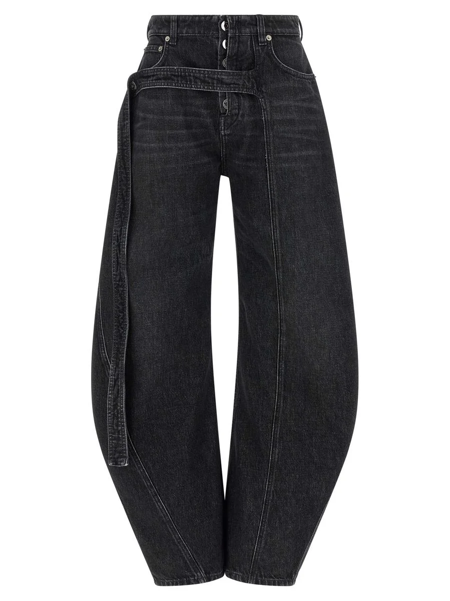 Cotton denim jeans with low waist, wide leg with side 'twisted' stitching, front button closure, front denim band detail, leather back logo tag, pockets Gender: Women Material: 100% COTTON Color: Black Made in: Italy Product ID: 2503WTR022D01606 *Import tax/duty will be calculated at checkout (If applicable)