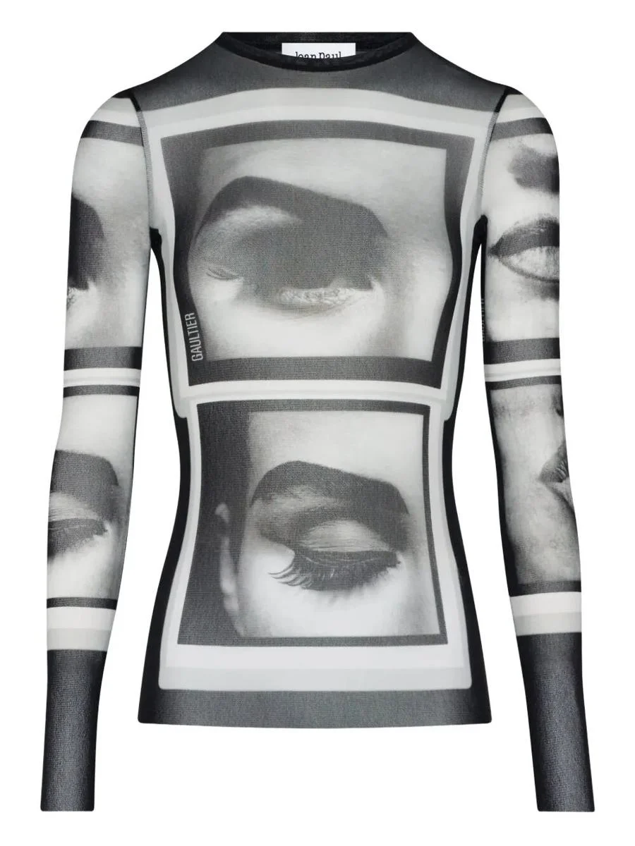 Jean Paul Gaultier Re-Edition : Mesh Longsleeve Top Printed "Eyes And Lips" Clothing