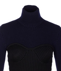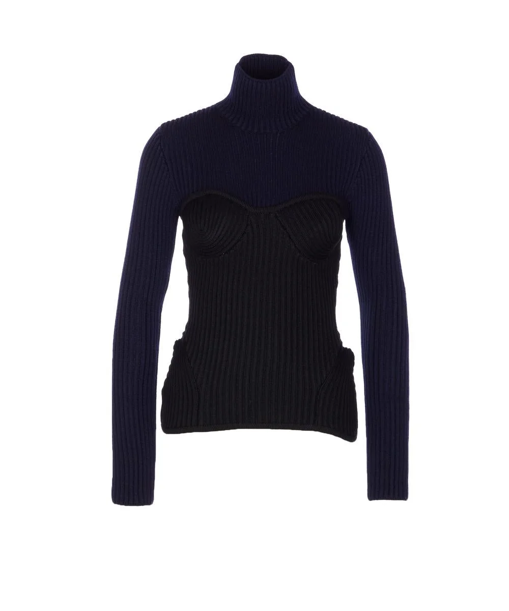 Jean Paul Gaultier Blue Bicolor Stretch Sweater, High Neckline, Long Slevees, Detail, Structured, US SIZE Gender: Women Material: 96%VIRGIN WOOL, 4%POLYAMIDE Color: BLUE Made in: Italy Product ID: PO005K0015900 *Import tax/duty will be calculated at checkout (If applicable)