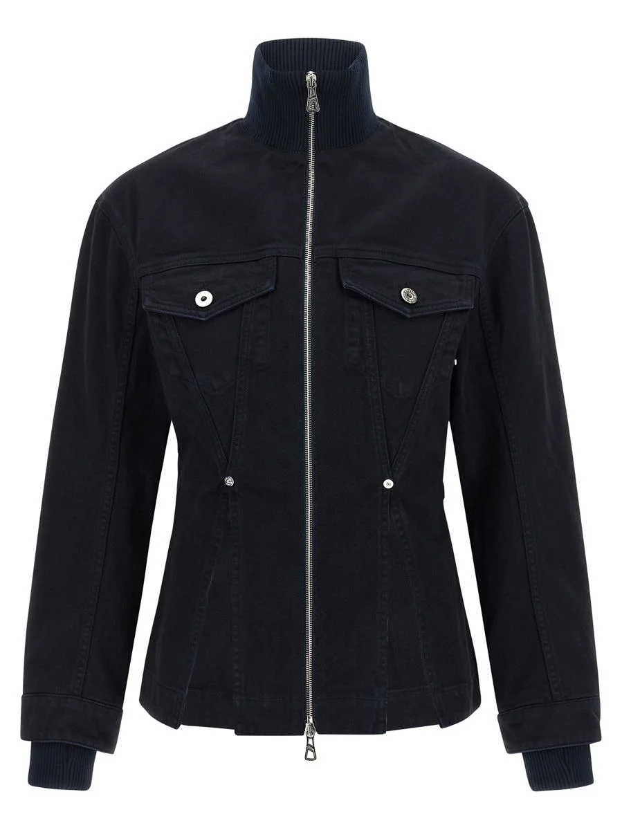 The Slit Denim' cotton denim jacket with stretch ribbed knit details, zip closure and front splits, hourglass silhouette, pockets, long sleeves with double layer cuffs and dropped shoulders, back logo tag Gender: Women Material: 100% COTTON Color: BLUE Made in: Italy Product ID: 2504WJA011W04959 *Import tax/duty will be calculated at checkout (If applicable)
