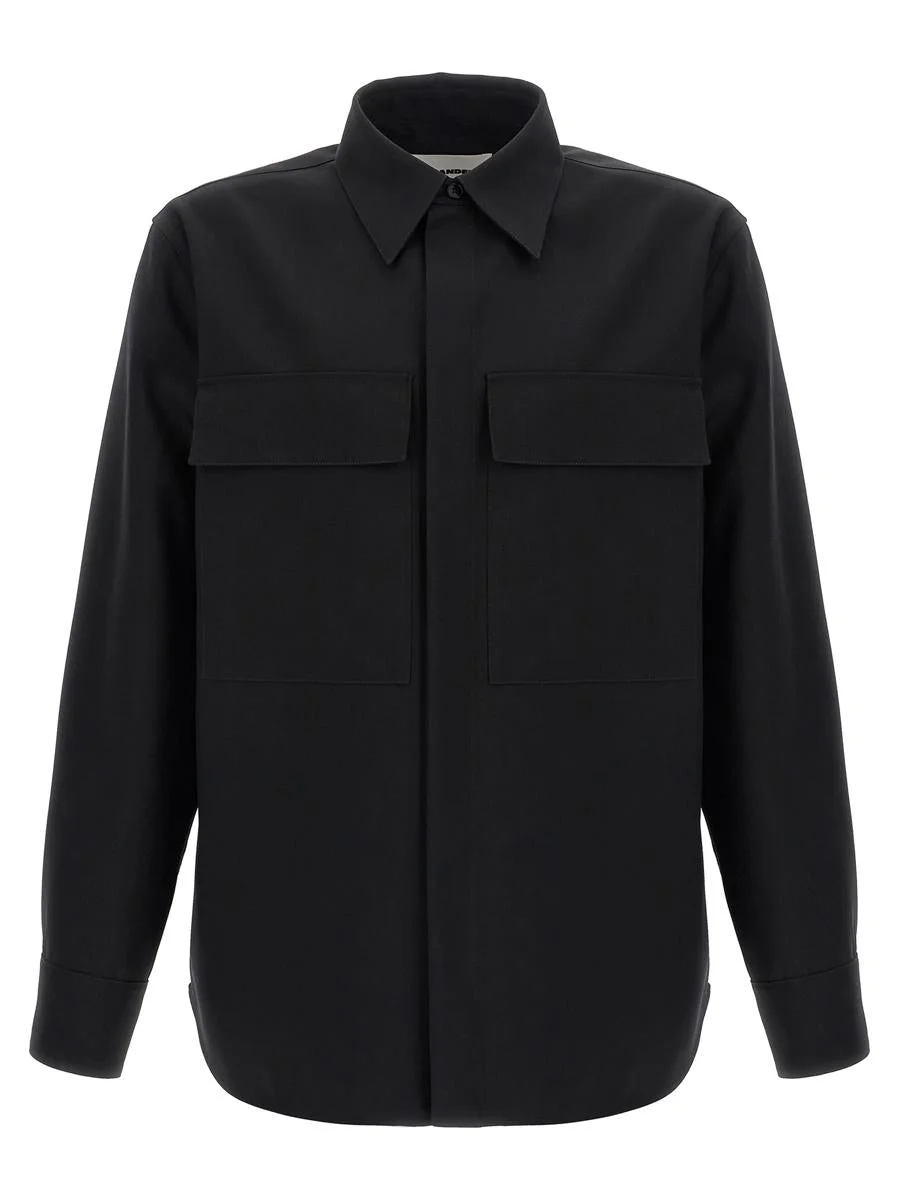 '08' wool shirt with front button closure, pockets, long cuffed sleeves Gender: Men Material: 100% WOOL Color: Black Made in: Italy Product ID: J23DL0104J40159001 *Import tax/duty will be calculated at checkout (If applicable)