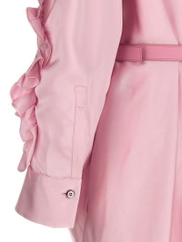 129 satin dress with high collar, long sleeves, ruffle appliqué, back zip closure, pockets Gender: Women Material: 100% VISCOSE Color: PINK Made in: Imported Product ID: J02CT0342J65022668 *Import tax/duty will be calculated at checkout (If applicable)