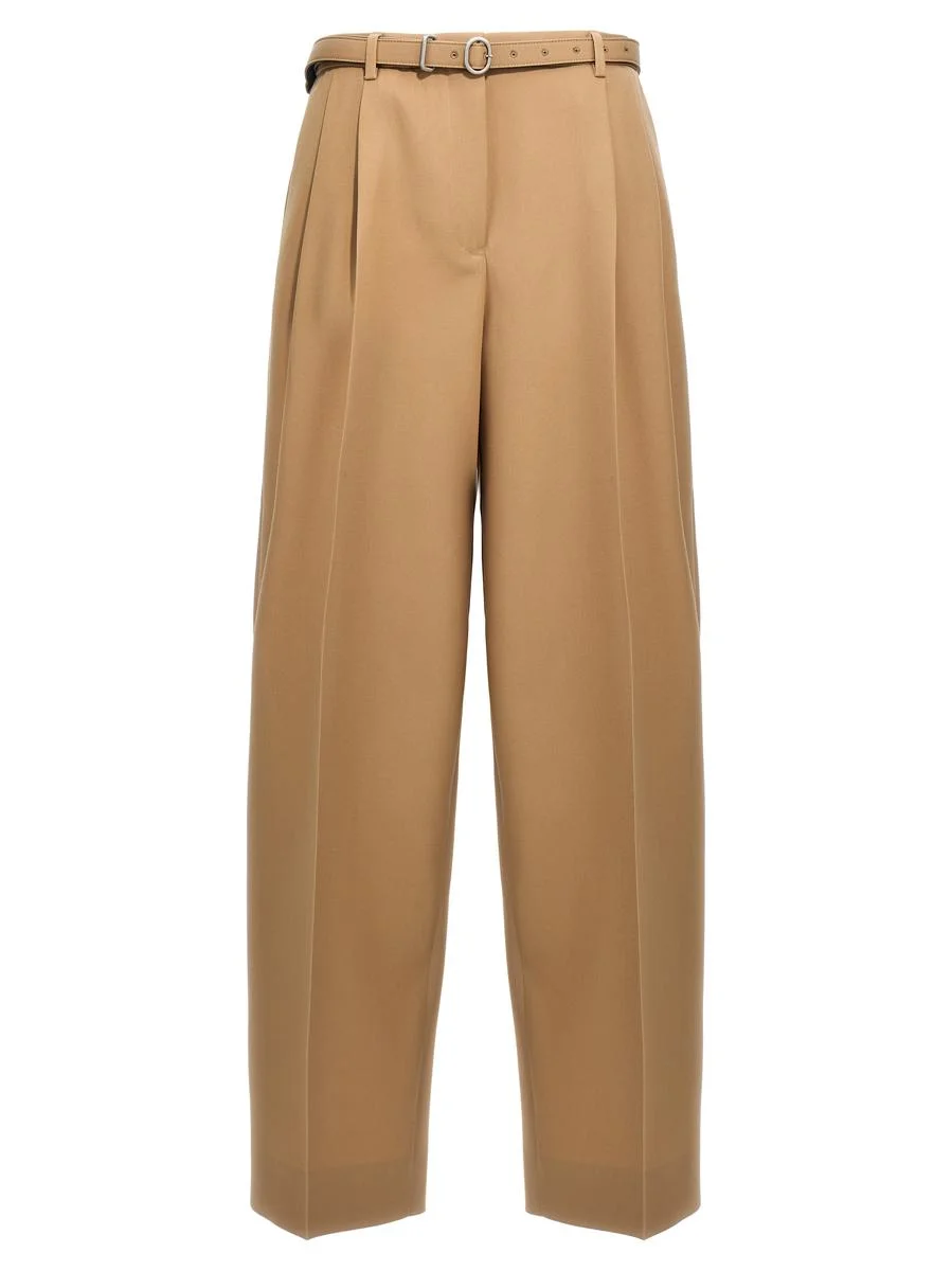 Wool gabardine pants with matching removable belt, hook and button zip closure, wide leg with pin and stretched pleat, pockets Gender: Women Material: 100% WOOL Color: Beige Made in: IT Product ID: J02KA0152J40002219 *Import tax/duty will be calculated at checkout (If applicable)