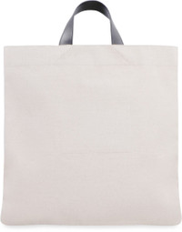 Canvas tote bag Front logo print Two flat leather handles Internal flat pocket Two card slots Width: 48 cm Height: 47 cm 100% Linen, 100% Calf Gender: MEN Material: LINEN Color: IVORY Made in: IT Product ID: J25WC0005P4917_102 *Import tax/duty will be calculated at checkout (If applicable)