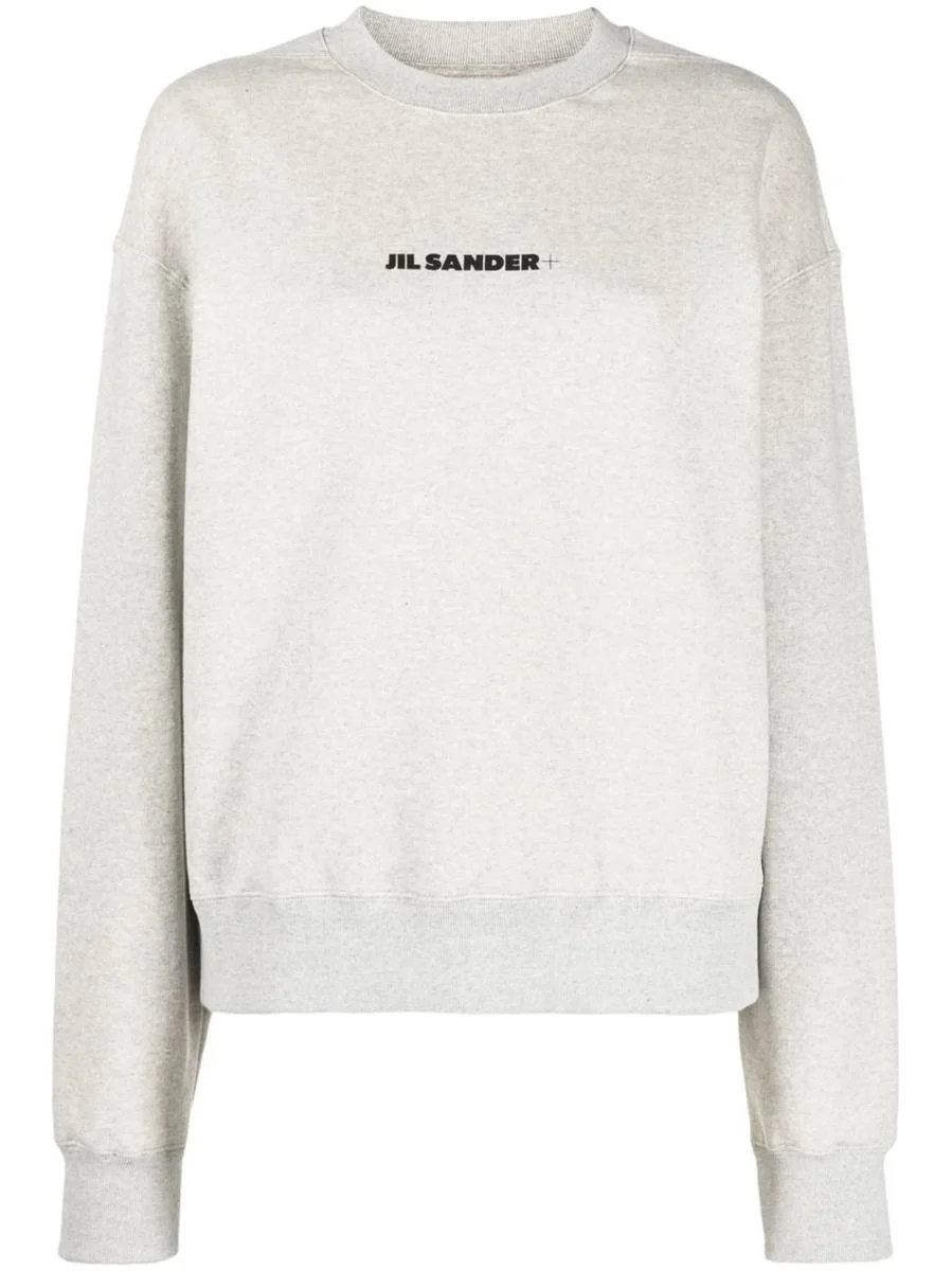 JIL SANDER GREY CREWNECK SWEATSHIRT WITH LOGO LETTERING PRINT IN STRETCH COTTON WOMAN