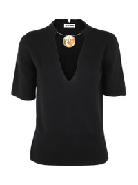 Jil Sander Crew Neck Short Sleeve Knit With Integrated Jewel Necklace Clothing Gender: Women Material: WOOL | 100% WOOL Color: Black Made in: Italy Product ID: J02NF0002.J14595_001 *Import tax/duty will be calculated at checkout (If applicable)