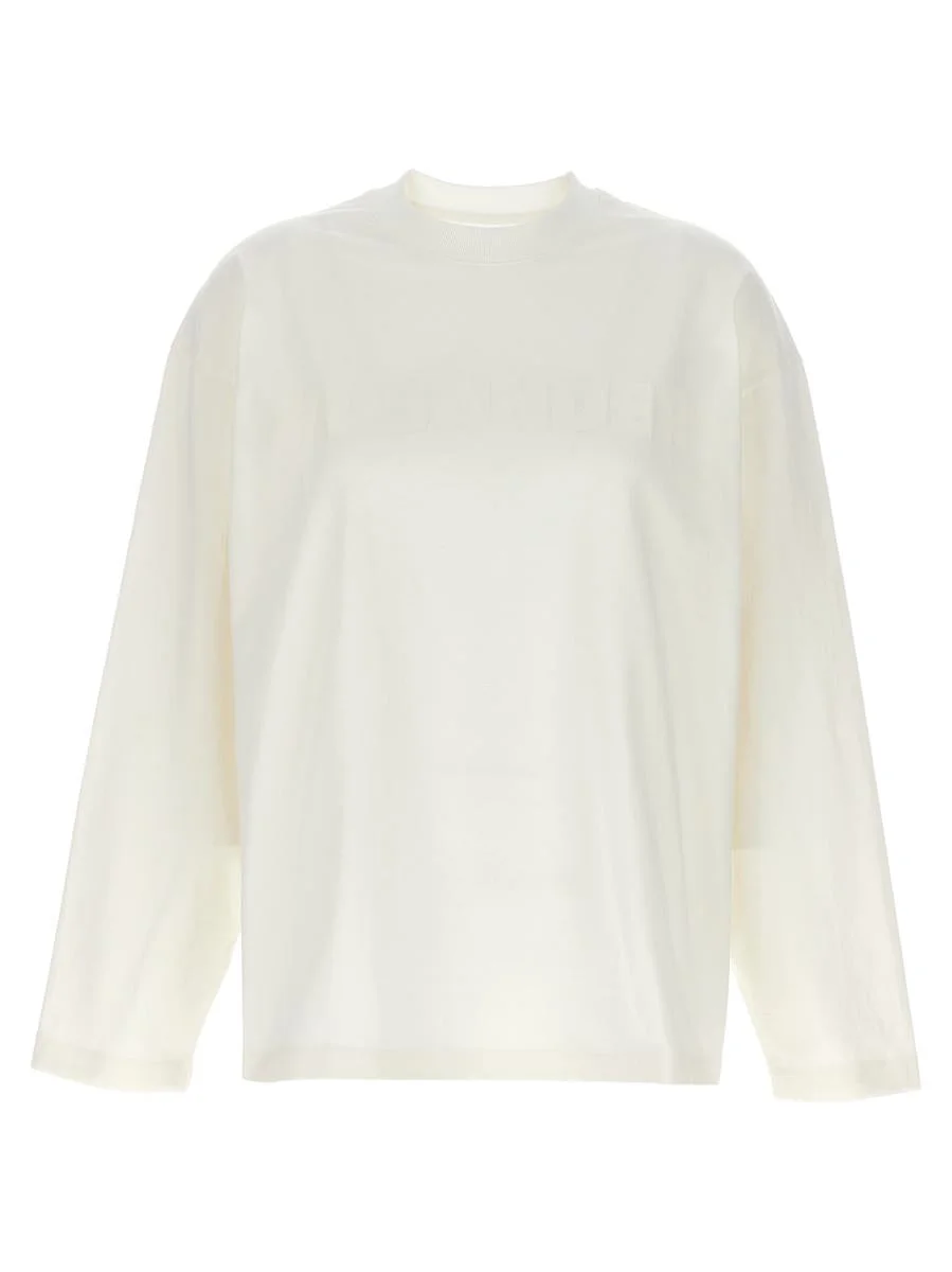 Cotton T-shirt with front logo print, crew neck, long sleeves Gender: Women Material: 100% COTTON Color: WHITE Made in: IT Product ID: J03GC0136J20243102 *Import tax/duty will be calculated at checkout (If applicable)