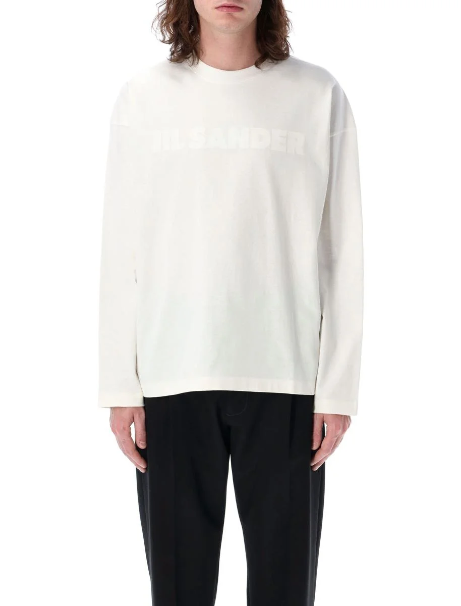 Cotton Logo t-shirt by Jil Sander. Featuring: Ribbed crew neck Long sleeves Dropped shoulders Tonal Jil Sander printed logo on front Oversized fit Model is 1,90 m and wears size L Gender: Men Material: 100% COTTON Color: Beige Made in: IT Product ID: 25PJ21GC0167J20243#102 *Import tax/duty will be calculated at checkout (If applicable)