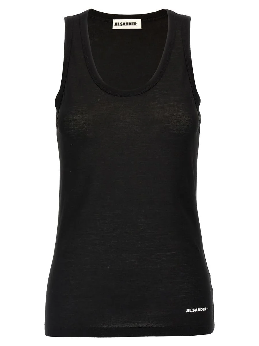 Cotton top with front logo print, round neckline, sleeveless Gender: Women Material: 100% COTTON Color: Black Made in: IT Product ID: J40NL0114J45031001 *Import tax/duty will be calculated at checkout (If applicable)