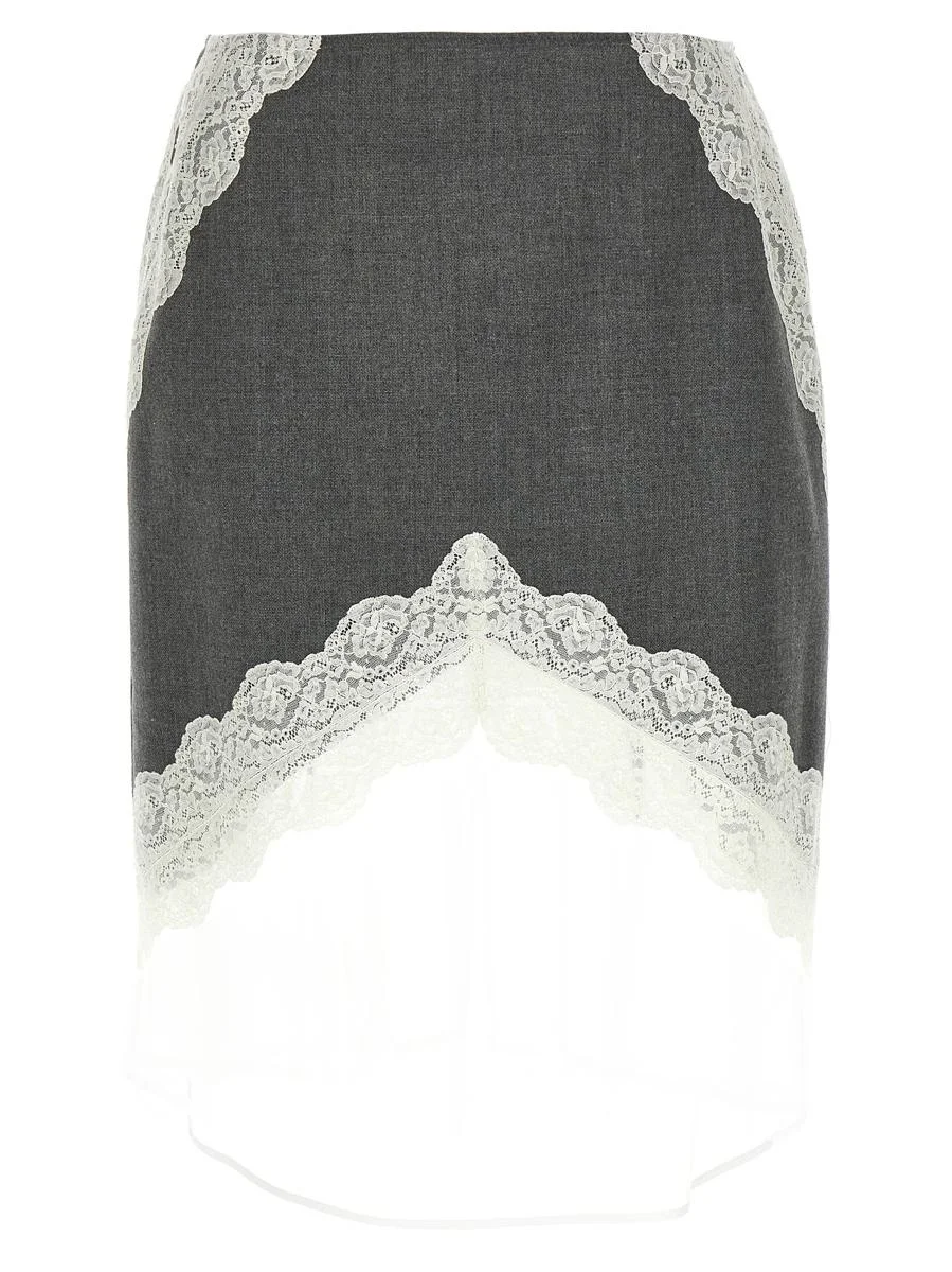 Midi skirt in wool canvas with lace inserts and organza bottom hem, straight cut, slightly high waist, zip closure and back split, viscose lining Gender: Women Material: 100% POLYESTER Color: GRAY Made in: Italy Product ID: J03MA0257J41557030 *Import tax/duty will be calculated at checkout (If applicable)