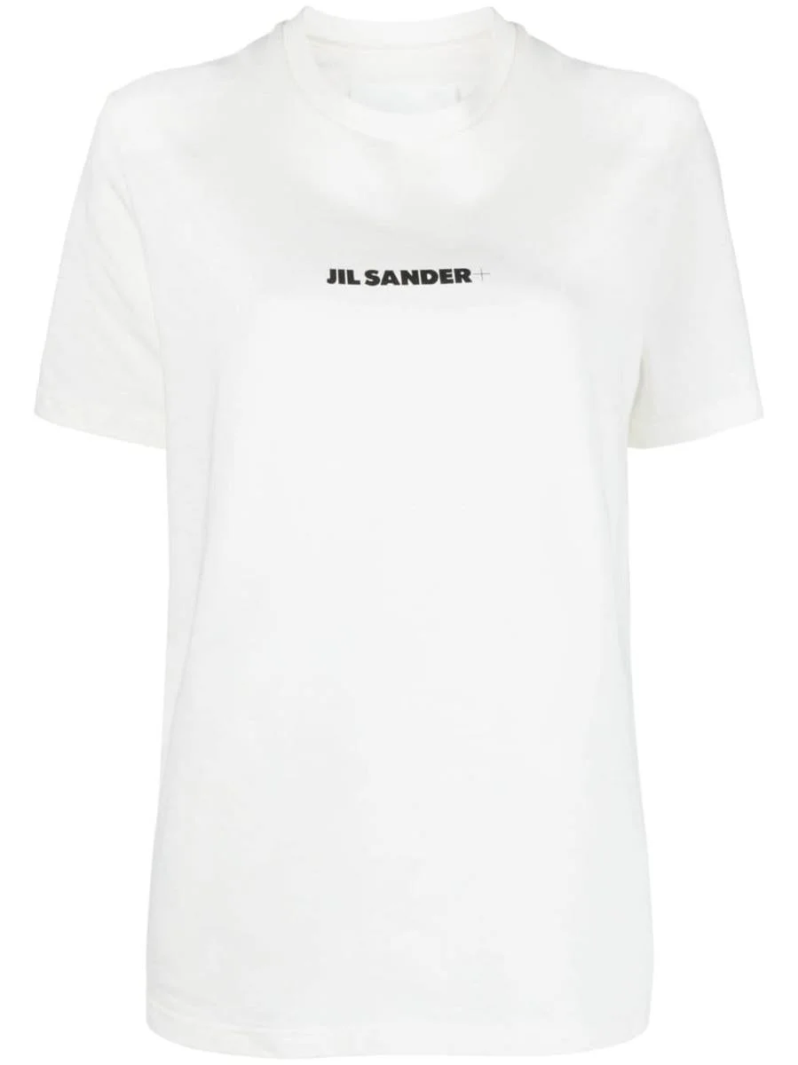 logo-print cotton T-shirt from JIL SANDER featuring white/black, cotton, logo print at the chest, crew neck, short sleeves and straight hem. WIDTH: WHITE/BLUE Size Type: International Gender: Women Material: NATURAL (VEG)->COTTON100 % Color: PORCELAIN Made in: IT Product ID: J40GC0118J20103102 *Import tax/duty will be calculated at checkout (If applicable)