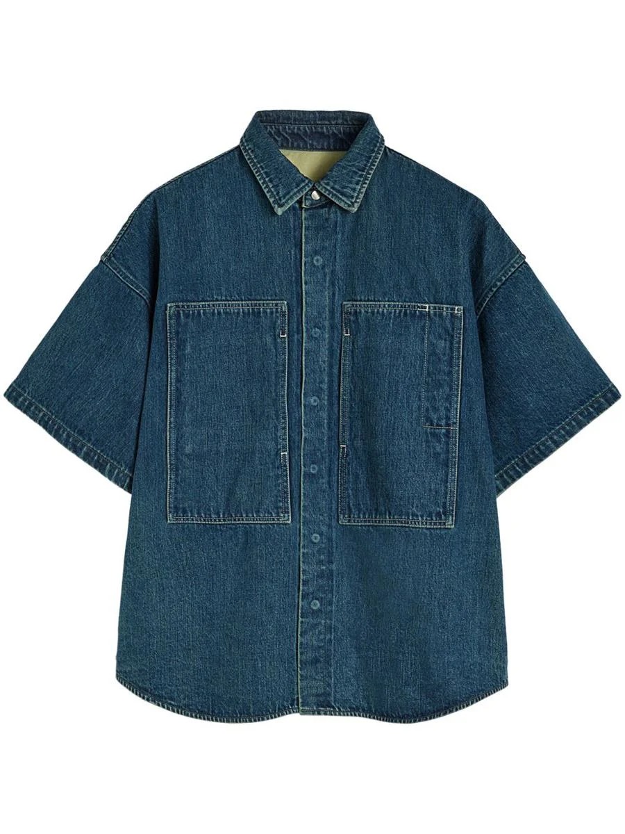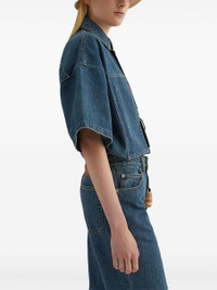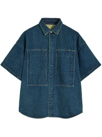 blue cotton denim concealed front button fastening polo collar crop sleeves panelled design curved hem Gender: Women Material: 100 COTTON Color: 420 Made in: Imported Product ID: J40DL0157J45291 *Import tax/duty will be calculated at checkout (If applicable)