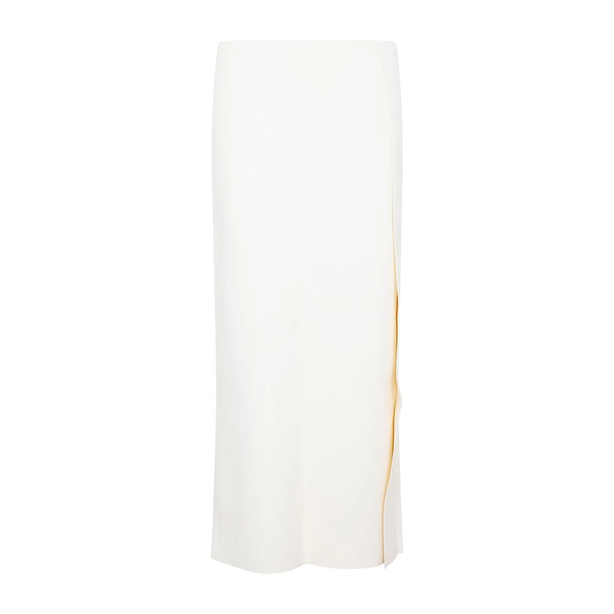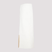 Jil Sander White Viscose Skirt. White viscose, regular waist, side pleat embellishment, midi length, single vent on back. Tonal stitching, regular fit. Gender: Women Material: 83%VISCOSE 17%POLYESTER Color: Beige Made in: IT Product ID: J03MA0115.J18273_102 *Import tax/duty will be calculated at checkout (If applicable)