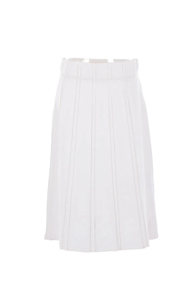 Jil Sander pleated skirt made of white linen. Featuring a side zip closure, exposed seams at the waist, and an unlined interior. Gender: Women Material: TESSUTO PRIMARIO: 100% LINEN - LINING: 100% COTTON Color: WHITE Made in: Italy Product ID: J02MA0256J60001100 *Import tax/duty will be calculated at checkout (If applicable)