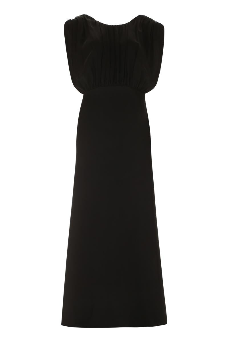 Sleeveless dress Gathered item Back V-neck 26% Viscose, 74% Acetate Gender: Women Material: ACETATE Color: BLACK Made in: IT Product ID: J01CT0184J76018_001 *Import tax/duty will be calculated at checkout (If applicable)